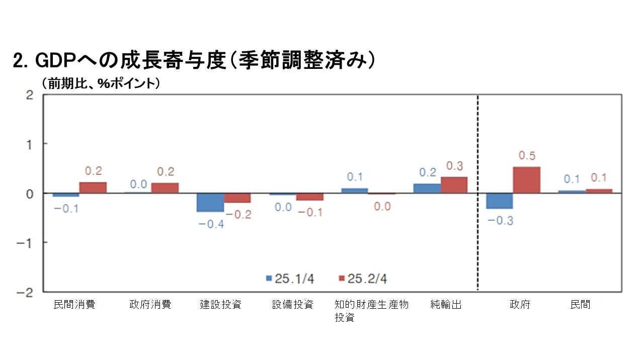 2025年第2四半期の「0.6%」成長のうち、政府が0.5%を占めています。ほとんどが政府部門(政府消費+公共投資)支出でもっているのではないか――です。