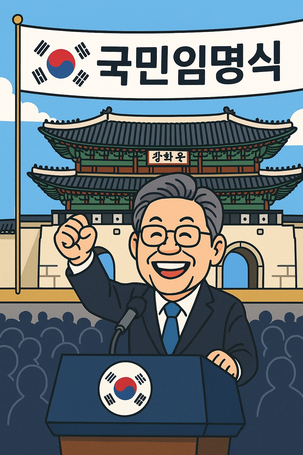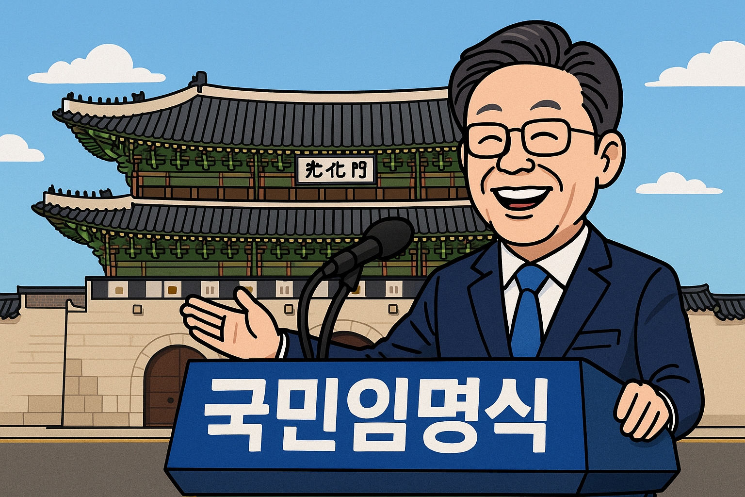 「李在明(イ・ジェミョン)大統領は去る06月04日、正式な就任式は行わずに宣誓のみを行い、後日、国民任命式を国民とともに実施することを約束した」