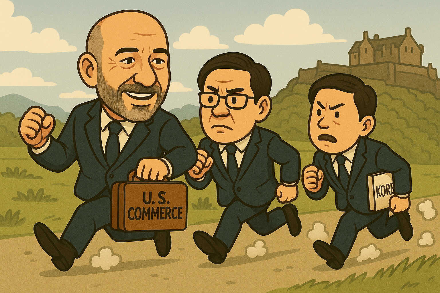 金正寛(キム·ジョングァン)長官と呂翰九(ヨ・ハング)本部長は、ラトニック商務長官と交渉を継続するためにスコットランドに追いすがる――という行動に出ました。