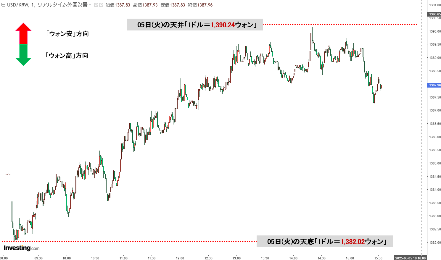 「ドルウォン」08月06日(水)初動・「1,389ウォン」