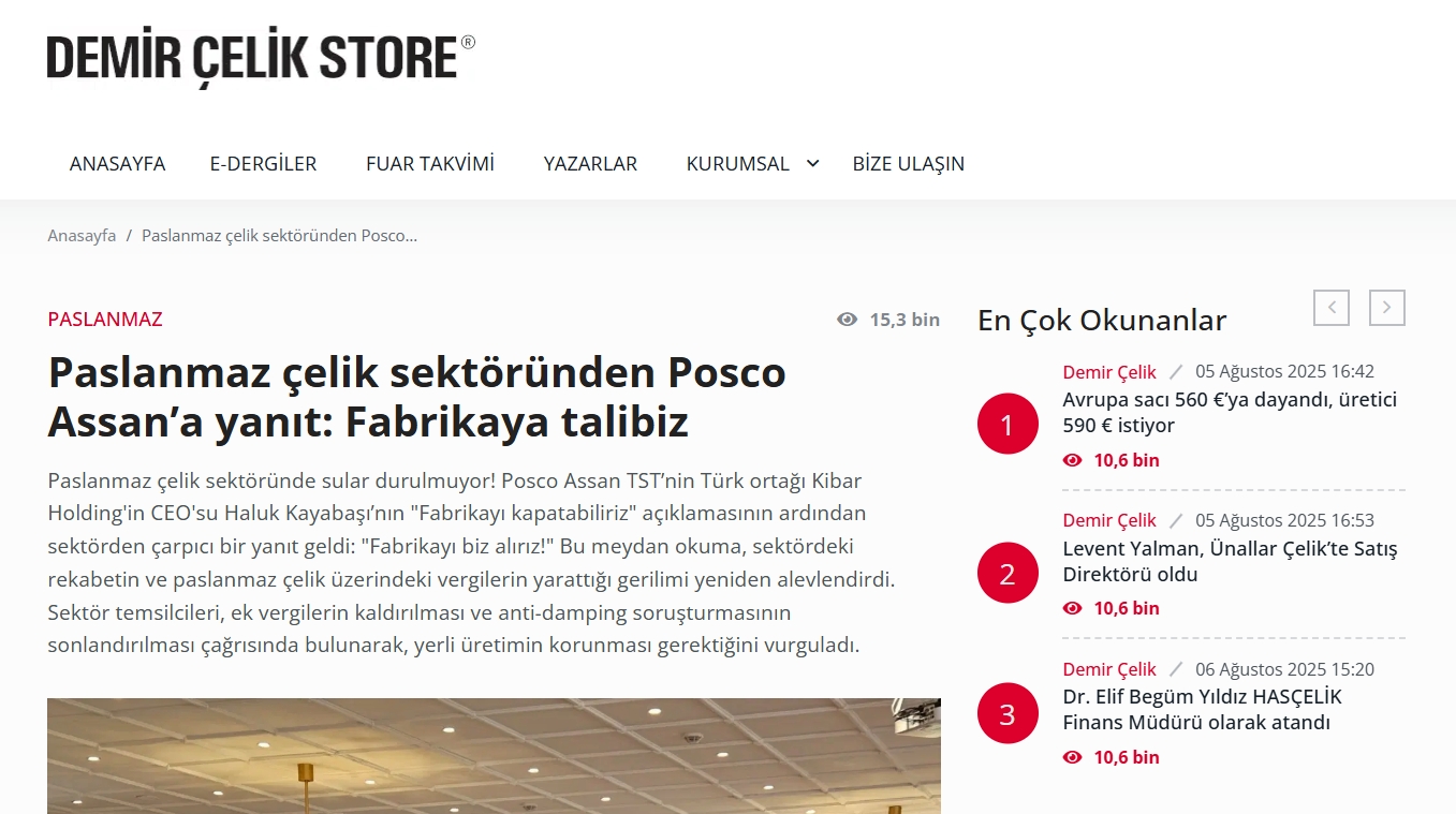 ※『Demir Çelik Store』はトルコの鉄鋼・金属産業向けの業界メディア。運営は『Metal Medya(メタル・メディア)』グループです。