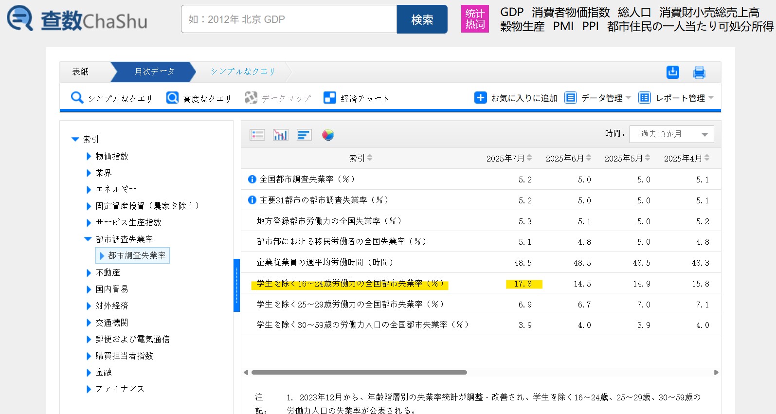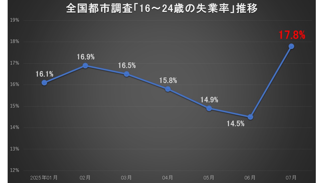 中国の統計局が2025年07月の雇用統計を公表したのですが、若年層(学生を除く16~24歳)の失業率が急騰しました。