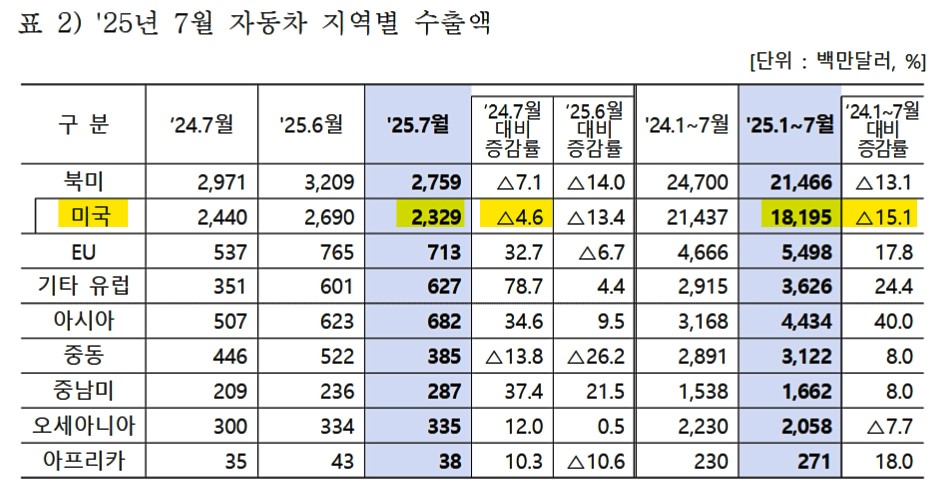 特に韓国の自動車輸出はアメリカ合衆国市場に依存しているため、合衆国市場での輸出減は大きな問題になります。