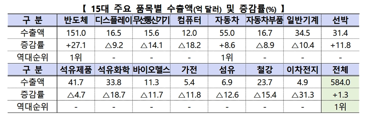 韓国にとって非常に重要な合衆国市場への輸出は全体で-12.0%の減少で、これで済んだのは、半導体が「56.8%」も増加したからです。