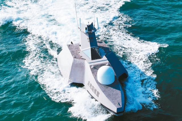 三胴体(トリマラン)型で、台湾海峡の荒波に耐え、高速航行でも高い安定性を確保。