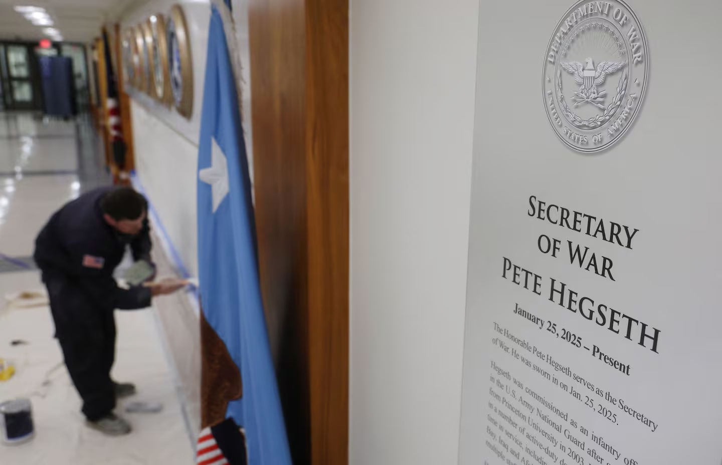 ↑「Secretary of War(戦争長官)」Peter Brian Hegseth(ピーター(ピート)・ブライアン・ヘグセット)の銘板(表示プレート)が掲げられている様子。