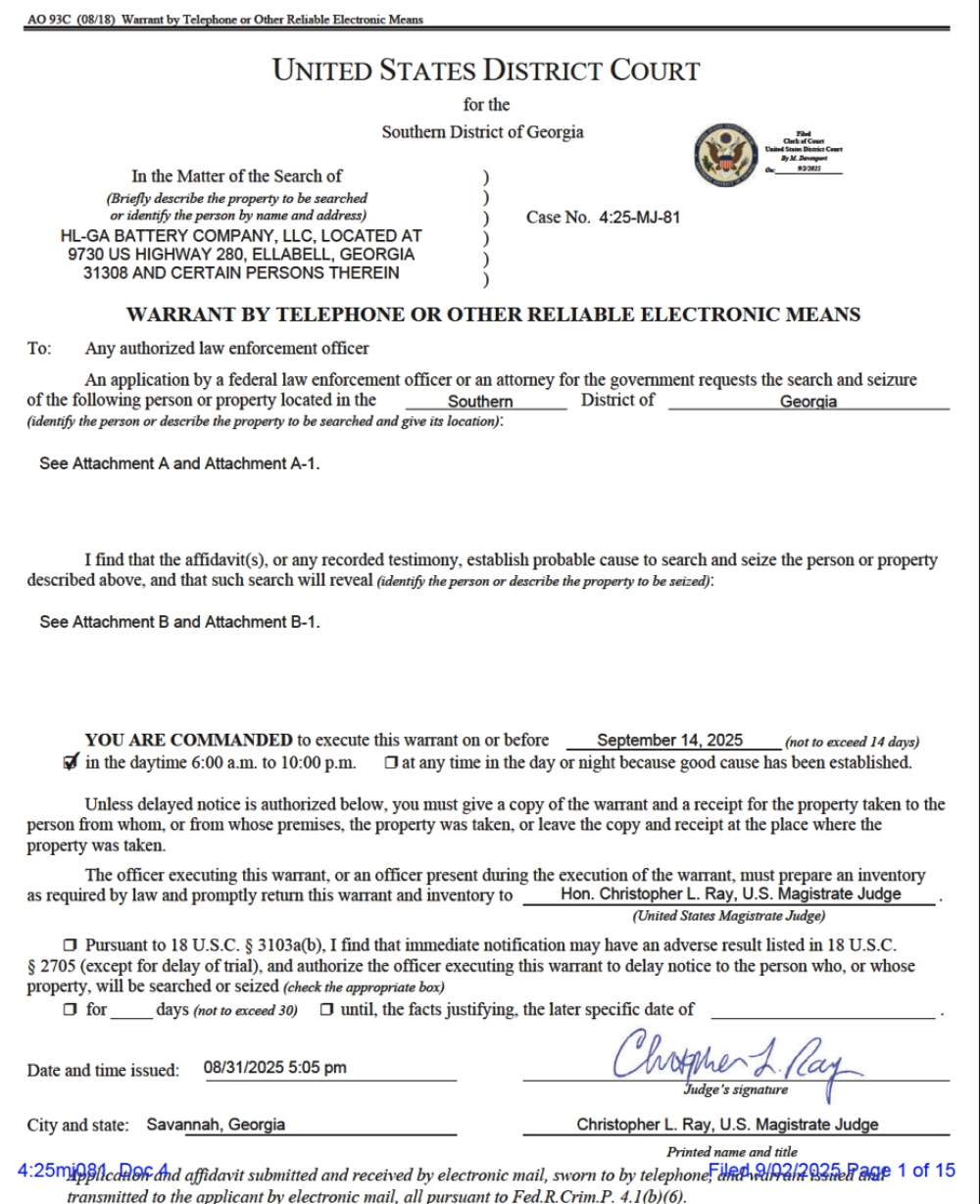 開示済みの「令状原本」は、以下のようになっており、令状の日付と執行期限については、発付は「08月31日」(Date and time issued: 08/31/2025 5:05 pm)、執行期限は「09月14日」(execute this warrant on or before September 14, 2025 (not to exceed 14 days))となっています。