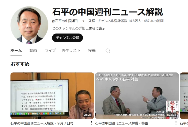 YouTubeで活躍している「石平」という方がいらっしゃいます。