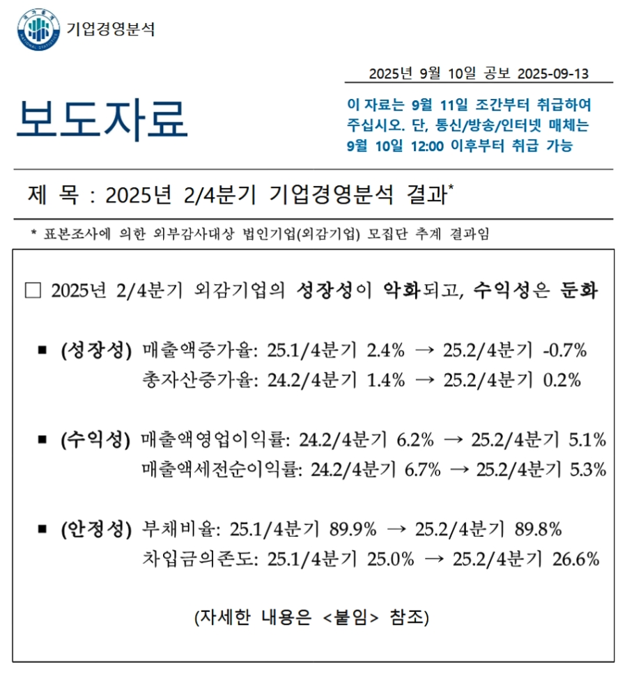2025年09月10日、『韓国銀行』が「2025年 第2四半期 企業経営分析結果」のデータを公表しました。どん底景気が続く中、韓国企業の経営状況は少しは好転しているのでしょうか?