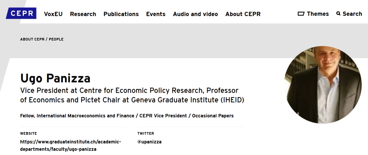 欧州のシンクタンク『Centre for Economic Policy Research』(経済政策研究センター:略称「CEPR」)のUgo Panizza(ウーゴ・パニッツァ)副会長にインタビューした記事です。