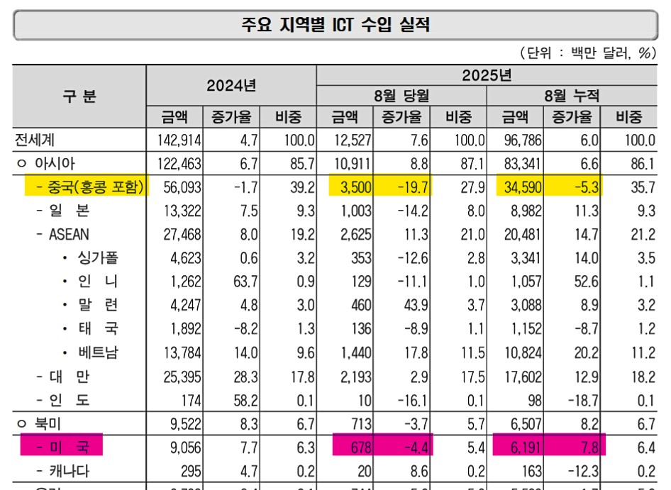 ⇒参照・引用元:『韓国 産業通商資源部』公式サイト「2025年08月情報通信産業(ICT)輸出入動向」
