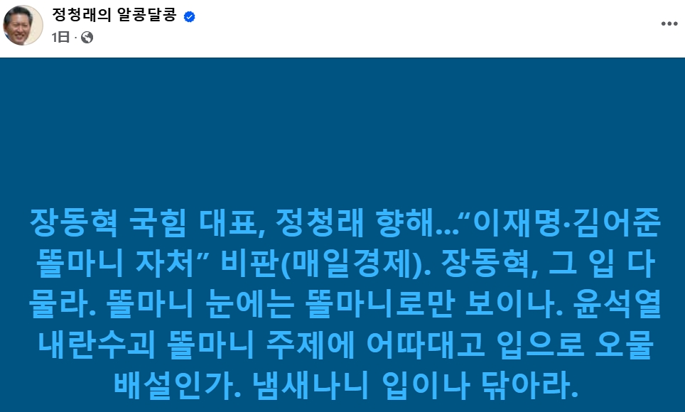 これに鄭清来(チョン・チョンレ)さんが反応。以下のようにFacebookに書き込みました。