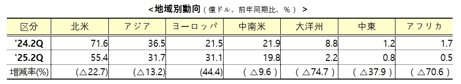 前四半期(157.4億ドル) 対比で10.1%減少したが、減少幅は緩和した(’25年第1四半期 -25.4億ドル ⇒ ’25年第2四半期 -15.9億ドル)。