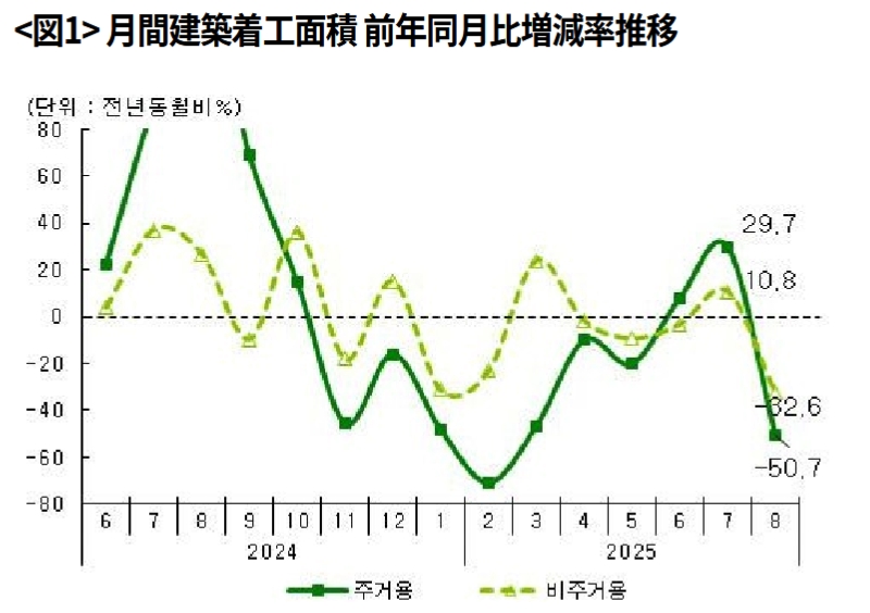 -『韓国銀行』によると、建設投資は2025年第1四半期と第2四半期にそれぞれ前年同期比13.3%、11.4%減少し、通貨危機の影響で縮小していた1998年以降で最も深刻な低迷を経験した。