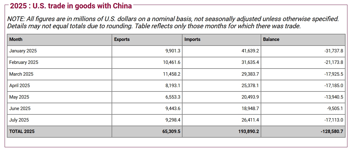 中国は以下のとおり、2025年01~07月累計「1,938億9,020万ドル」。