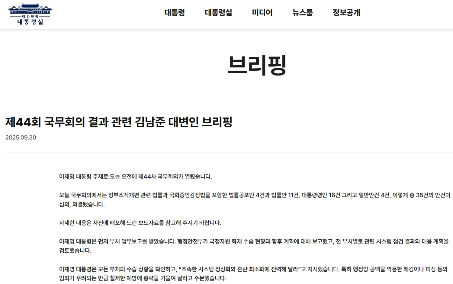 秋夕の連休前に行われた国務会議の内容ですが、なぜプレスリリースに取り上げられているかというと、もちろん国民に対して「オレ、李在明(イ・ジェミョン)は仕事をしてますよ」――とアピールするためです。