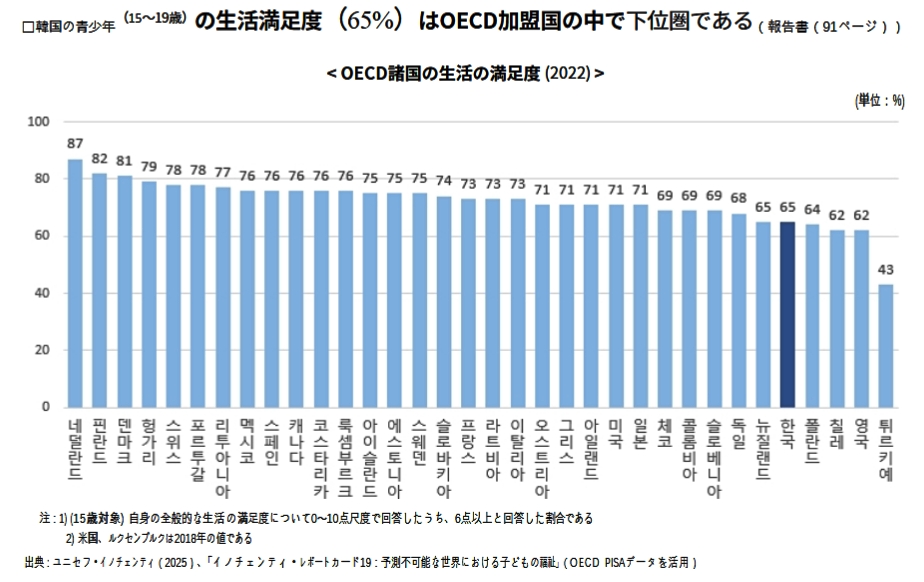 2025年10月01日付けで韓国の統計局が「児童・青少年の生活の質 2025」を公表しています。