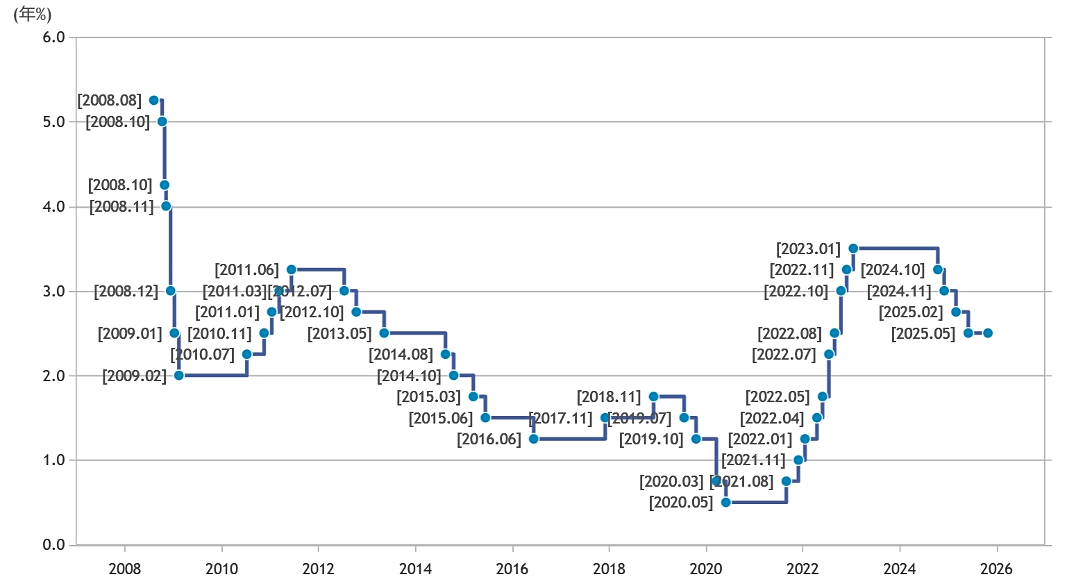 2025年10月23日、韓国の金融通貨委員会は基準金利を「2.50%」で据え置くと発表しました。