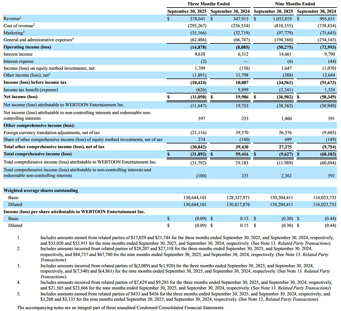 税引前利益:-1,042.4万万ドル※データ出典は『Webtoon Entertainment』公式サイト