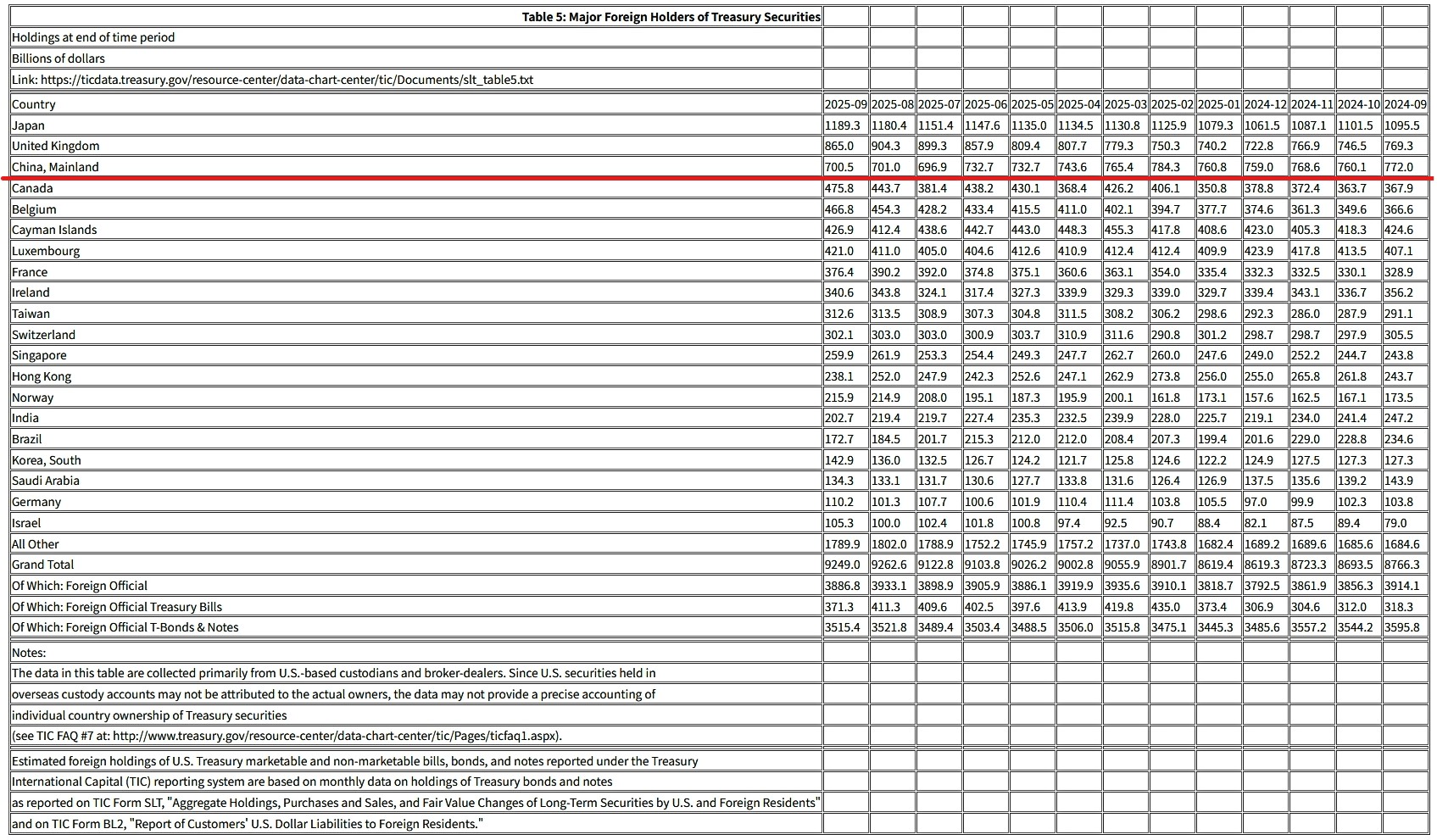 2025年11月17日、アメリカ合衆国の財務省が2025年05月時点での「合衆国公債の主要ホルダーの保有金額」を公表しました。