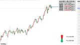 前日は陽線で終わりましたが、ローソク足の上が削られました。本日は現在のところ陰線。