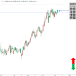 これで2025年12月第1週目が締まりましたので、ローソク足1本が1週間の値動きを示す「週足」で見てみます。