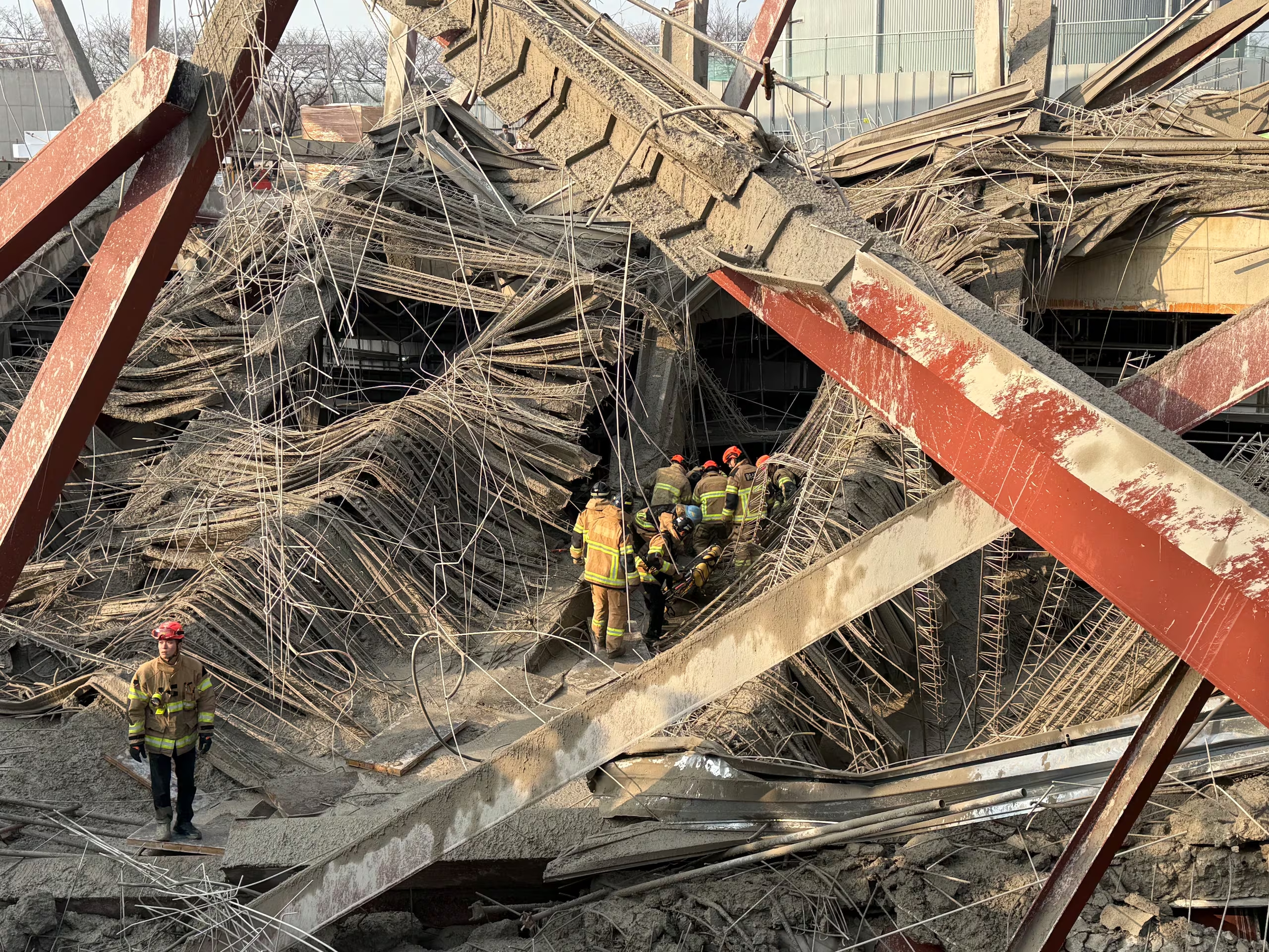 この崩壊に現場の作業員4名が巻き込まれました(2025年12月11日15:40時点いまだ推定)。1人ががれきの中から救助され病院に搬送されましたが心肺停止状態。