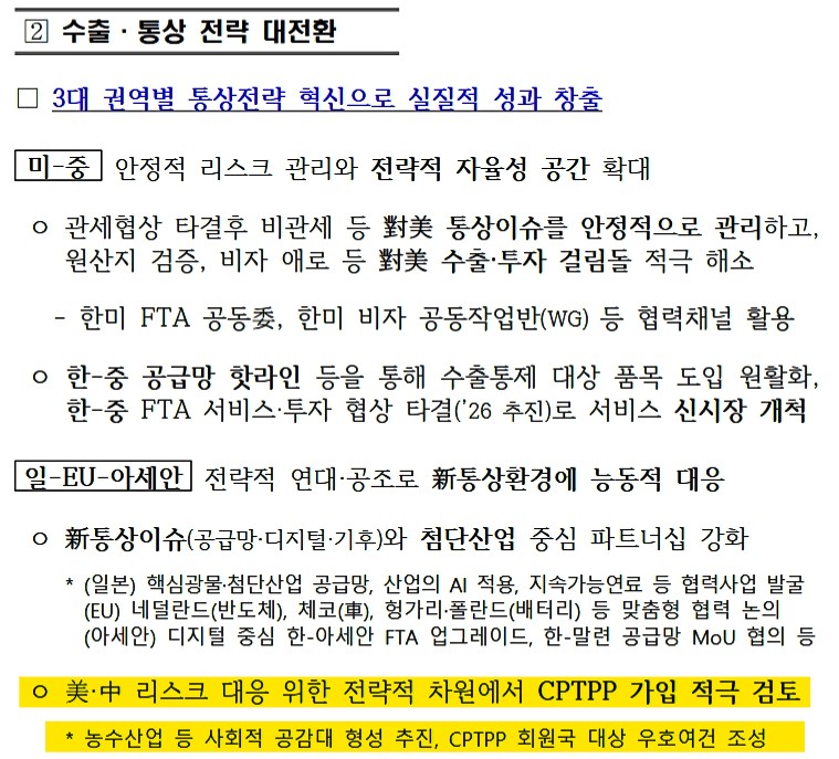 この中に、CPTPP加盟に向けて積極的に検討する――と記載されています。