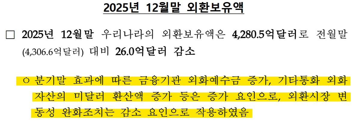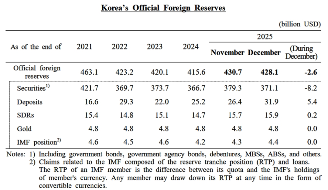 ⇒参照・引用元:『韓国銀行』公式サイト「2025년 12월말 외환보유액」