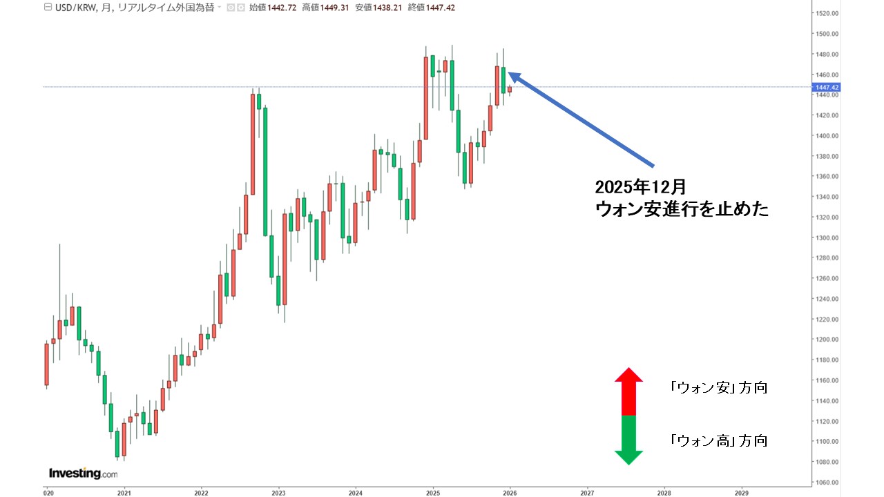 12月はウォン安進行を止めた「月」となりましたが、この過程でドルをかなり溶かしたでしょう。