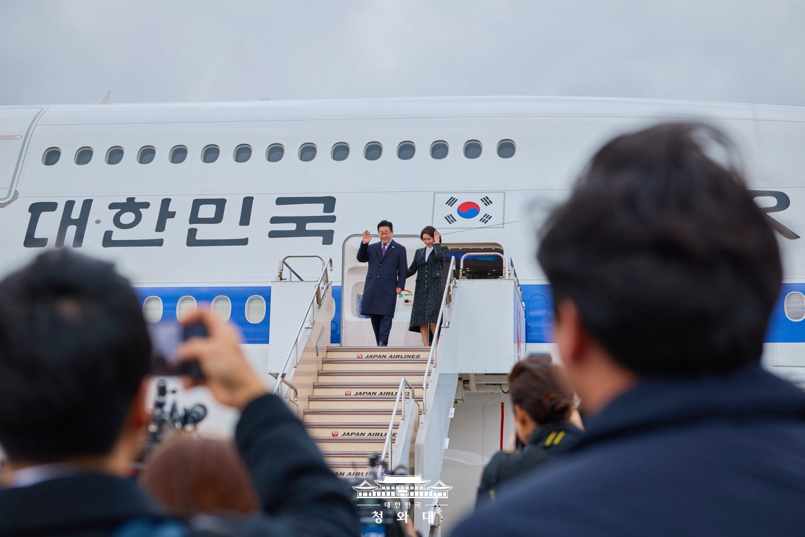 ↑関西空港に到着した李在明(イ・ジェミョン)さん。