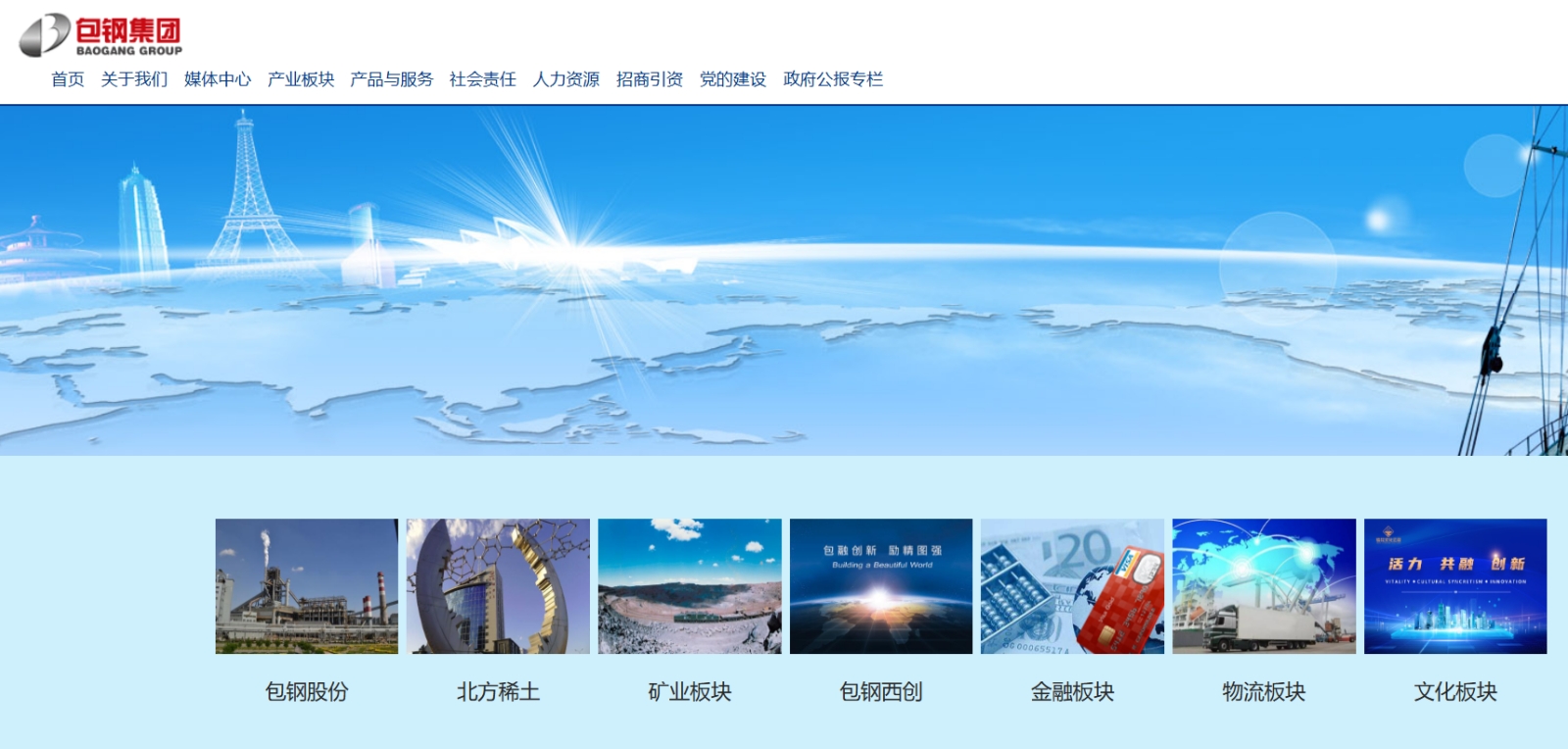 ↑『包钢集团』の公式サイト。傘下の企業が並んでいますが、このうち『北方稀土』がレアアースを扱う上流企業です/スクリーンキャプチャー。