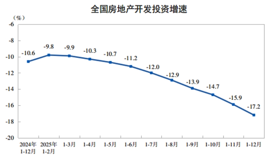 2025年、全国の不動産開発投資は8兆2,788億元に達し、対前年同期比前年比17.2%減少した。