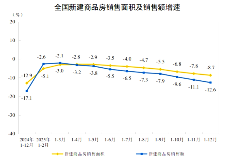2025年には、新築商業住宅の販売面積は8億8,101万平方メートルに達し、前年比8.7%減少した。