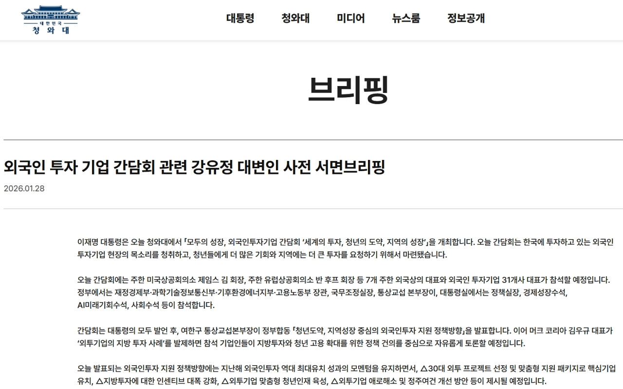 外国人投資企業懇談会に関する姜由貞(カン・ユジョン)報道官 事前書面ブリーフィング