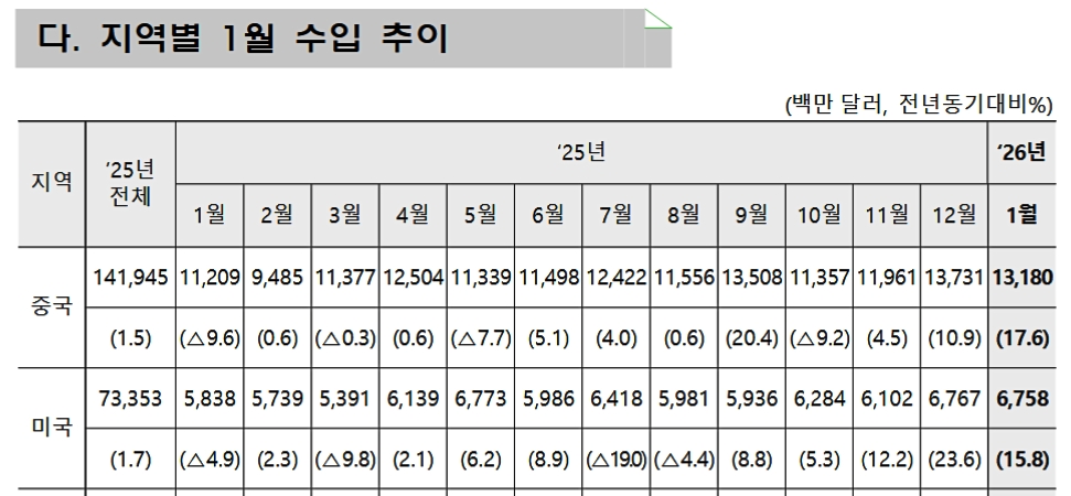 ⇒参照・引用元:『韓国 産業通商資源部』公式サイト「2026年01月輸出入動向」