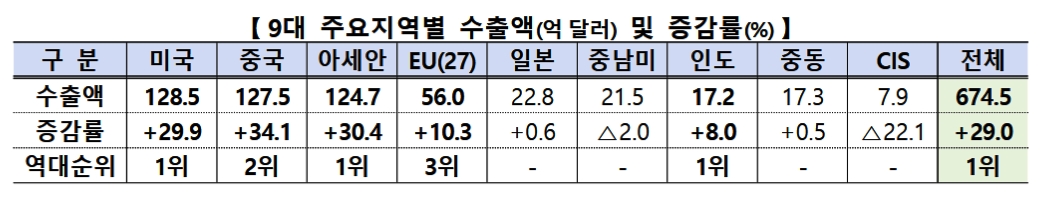韓国にとっては無茶苦茶に良い結果となりました。輸出は対前年同期比で29.0%ポイント増加しており、貿易収支は155億1,200万ドルに達しています。