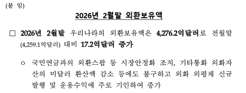 ⇒参照・引用元:『韓国銀行』公式サイト「2026년 2월말 외환보유액」