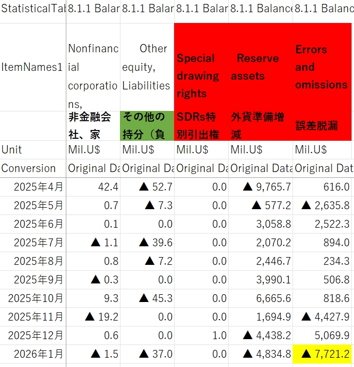 「なぜ?」なのですが、誤差脱漏が異常なほど大きいのです。以下をご覧ください。