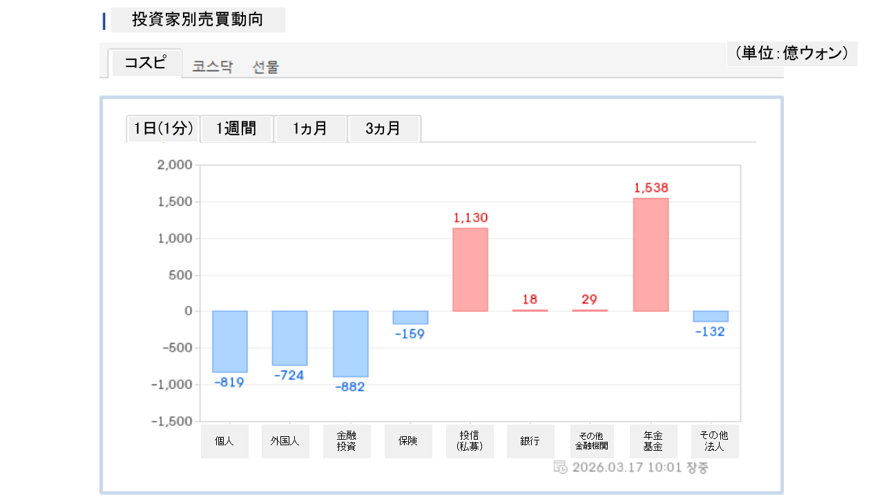 個人投資家は「819億ウォン」の売り越し、外国人投資家は「724億ウォン」の売り越しです。