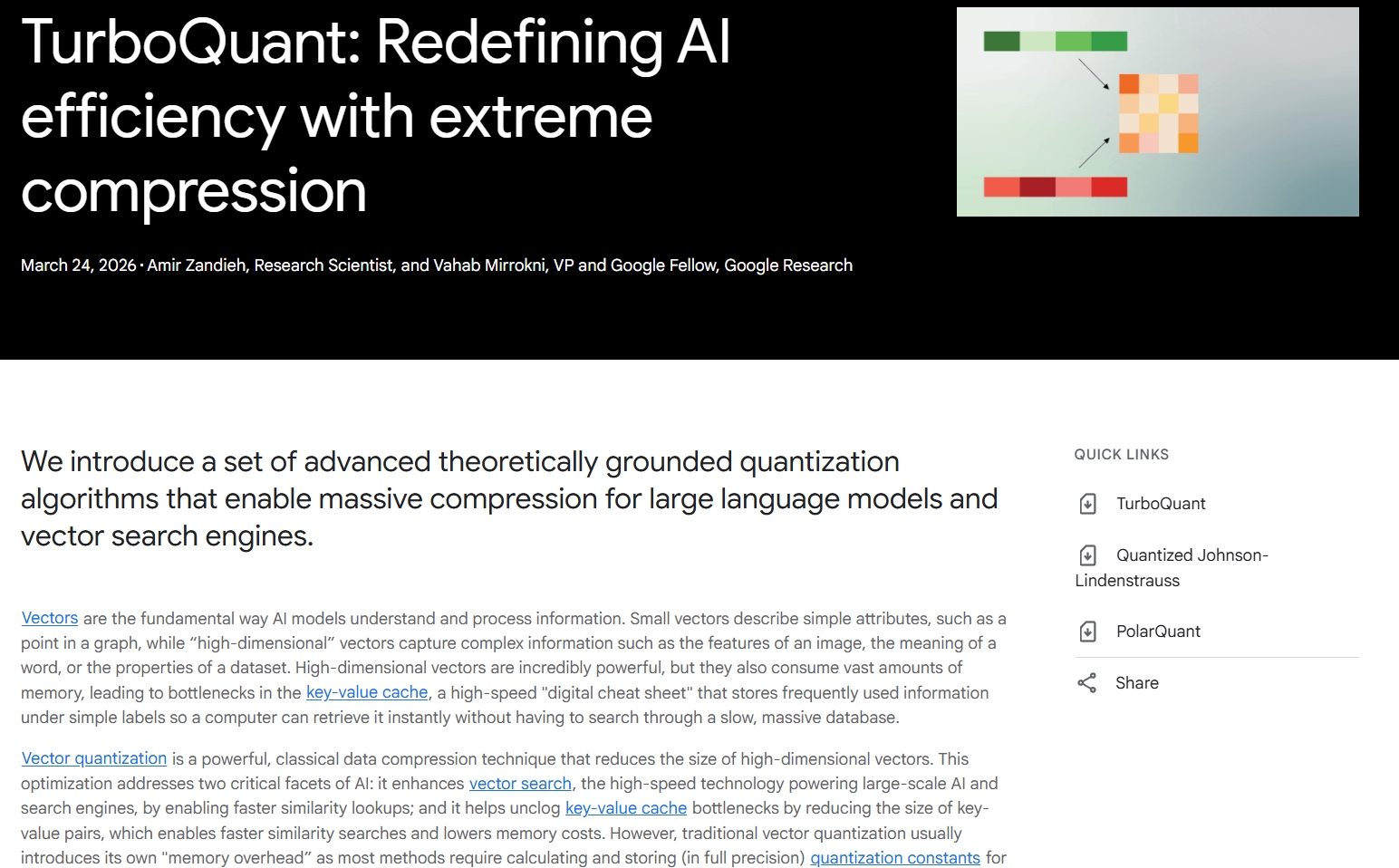 ⇒参照・引用元:『Google Research』「TurboQuant: Redefining AI efficiency with extreme compression」