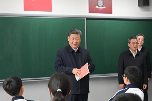↑中学校の教室に中国共産党の首脳部がいるという珍しい光景。