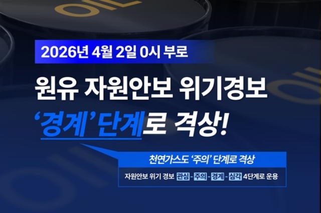 ↑「原油資源安全保障危機警報を「警戒」段階に引き上げ!」という産業通商資源部のお知らせ。2026年04月02日発令。これまでは「注意」でした。政府は資源安全保障危機「警戒」段階の発令に伴い、公共機関の車両運行を2部制に強化し、公営駐車場には5部制を施行する。