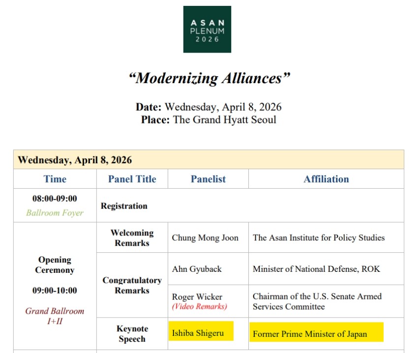 これは韓国のシンクタンク『峨山政策研究院』が開催する「Asan Plenum(アサン・プレナム) 2026」に出席し、キーノートスピーチ(基調講演)を行うためです。