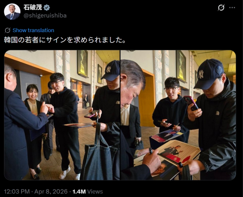 ちなみに石破茂は自身の『X』アカウントに以下のような投稿を行っています。韓国の若者にサインを求められたそうで