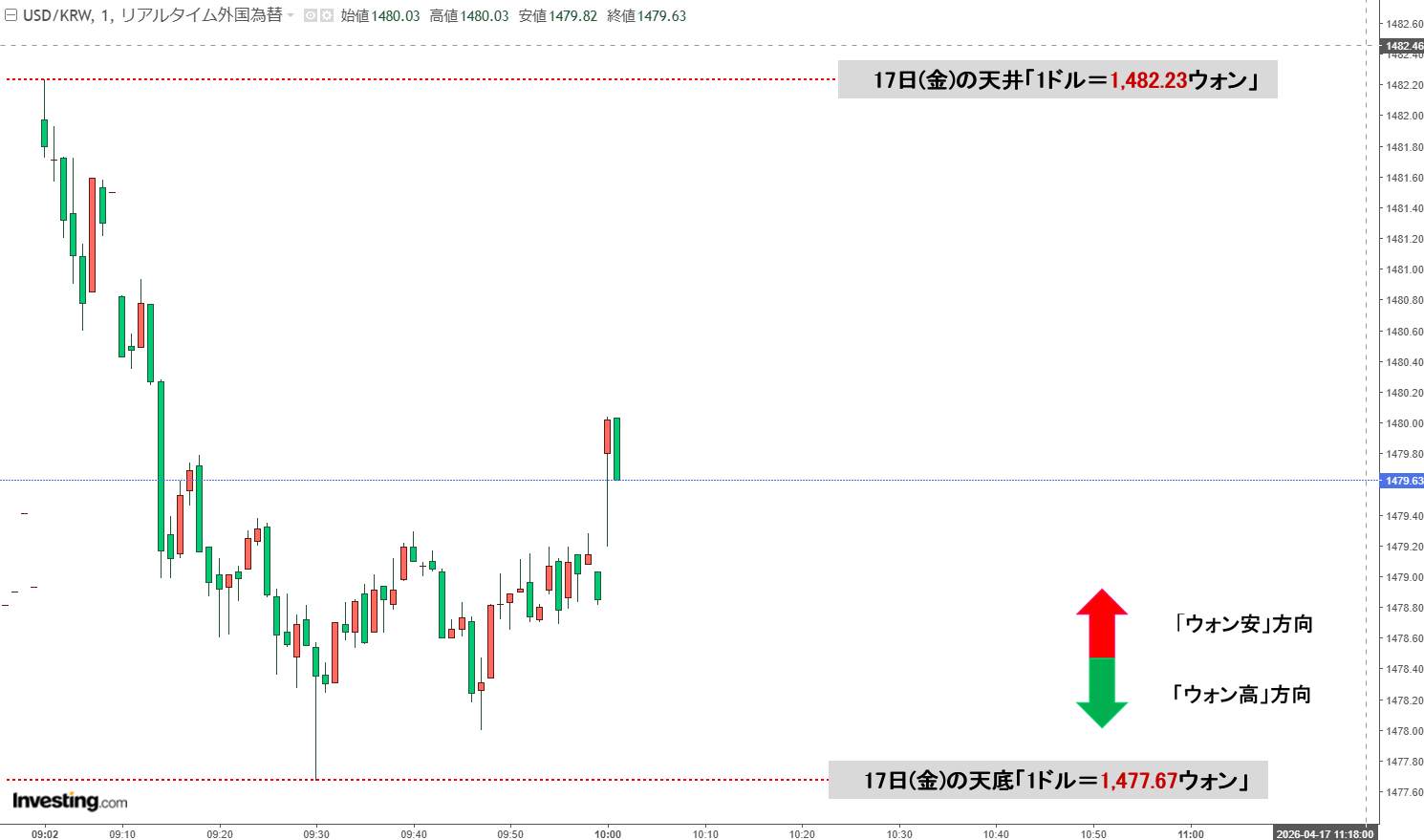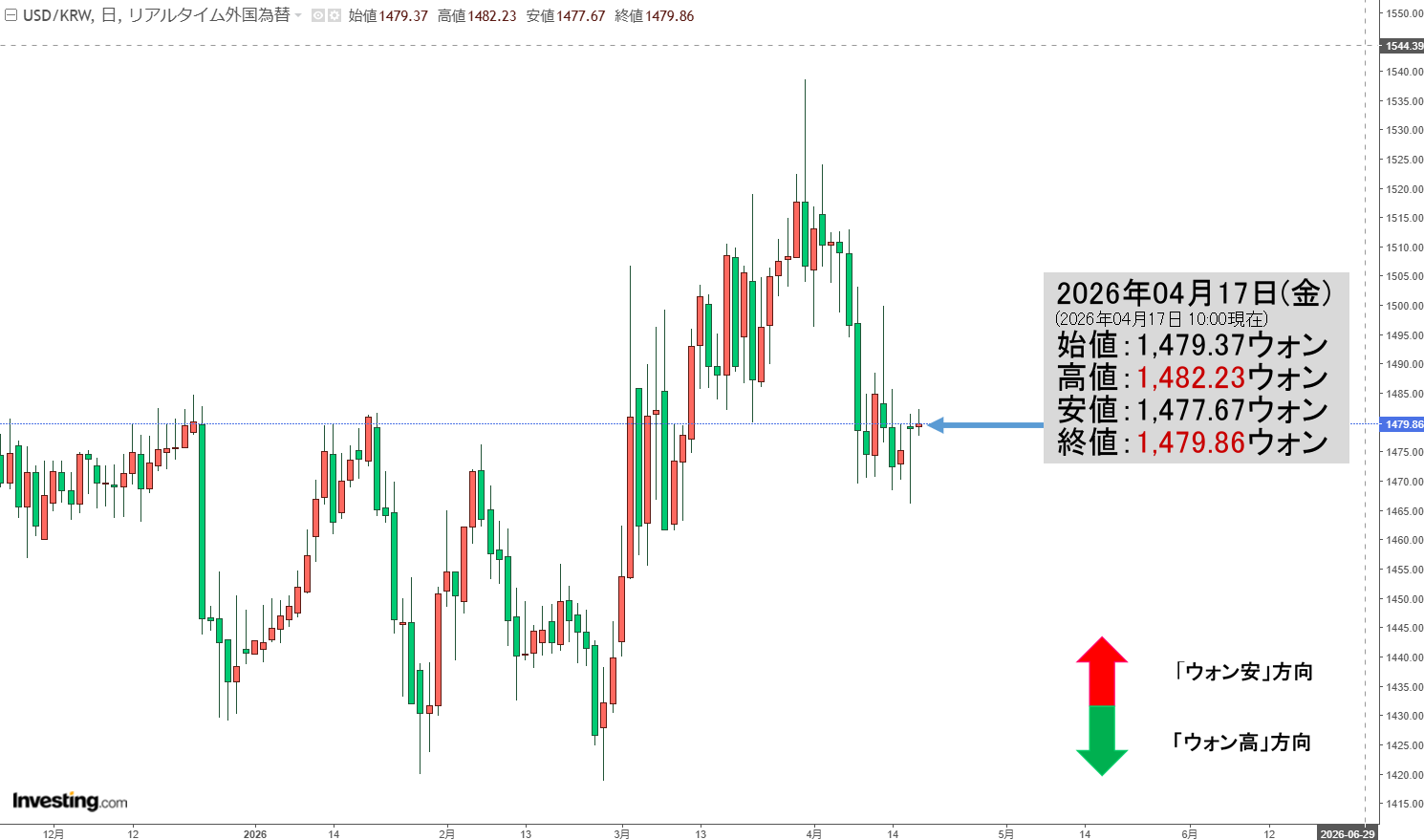 「ドルウォン」04月17日(金)初動・「1,479ウォン」まだ1,480を巡る戦い。