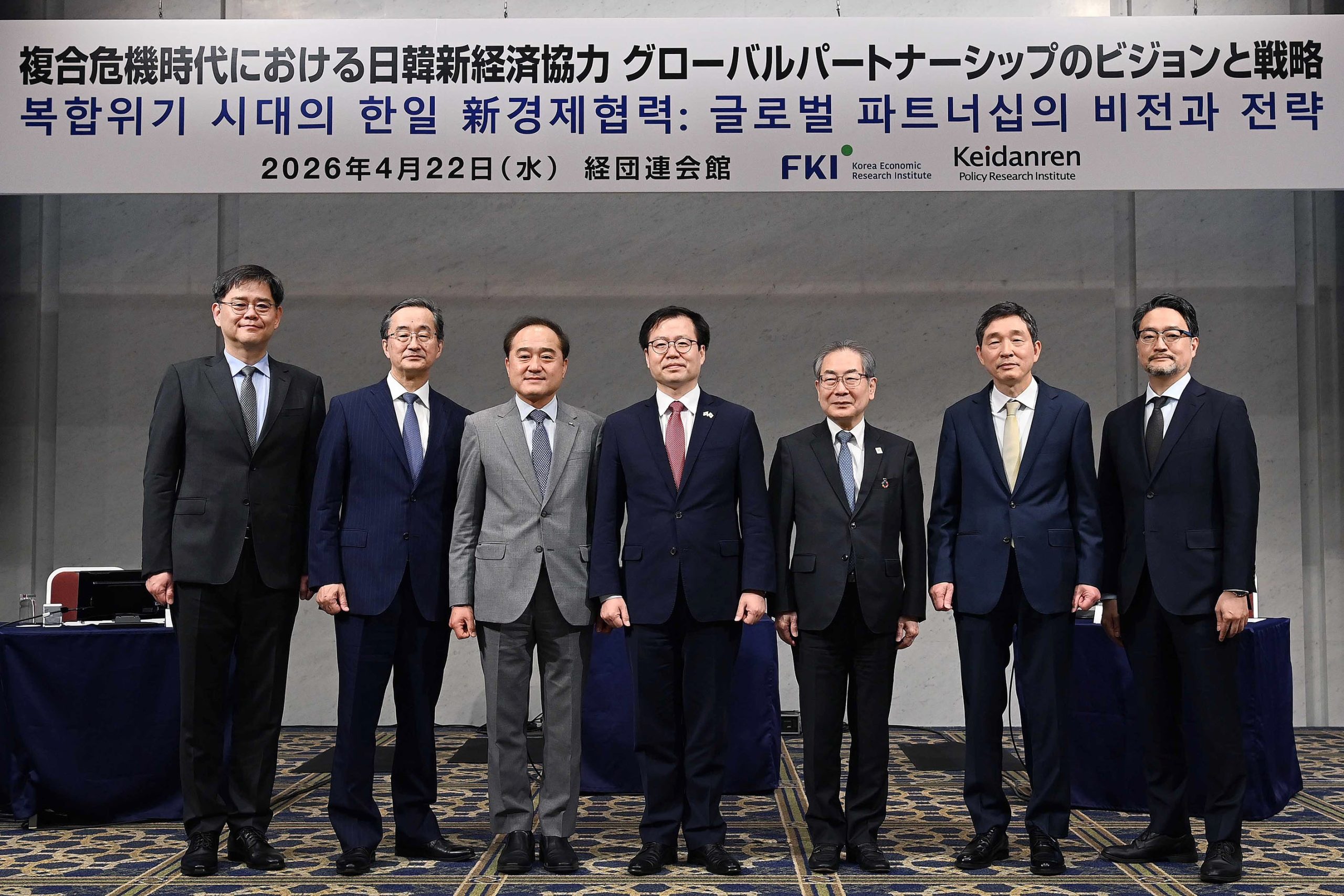 2026年04月22日、日本・経団連会館の国際会議室で、『韓国経済人協会』傘下の『韓国経済研究院』(韓経研)と『日本経済団体連合会』(経団連)の総合政策研究所が共同でた「複合危機時代の日韓新経済協力セミナー」が行われました。