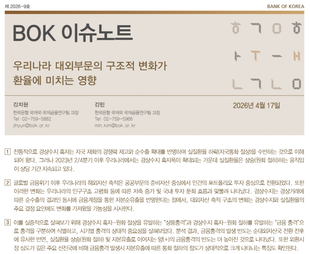⇒参照・引用元:『韓国銀行』公式サイト「[제2026-9호] 우리나라 대외부문의 구조적 변화가 환율에 미치는 영향」