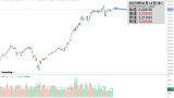 上昇していますがなかなかの激闘で、上下に長いヒゲを持つローソク足が多数出現しています。果たして「1ドル=1,230ウォン」を超えて日足(ローソク足1本が1日間の値動きを示します)を確定させることができるでしょうか?