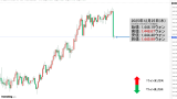 天底となっている「1ドル=1,184.60ウォン」からウォン安進行した後下落。およそ「1ドル=1,185.1ウォン」で底を固めて再上昇。およそ「1ドル=1,186.5ウォン」を突破できるかでもみましたが、いったん下がってからこれを抜き、「1ドル=1,187.5ウォン」まで達します。